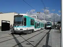 Les rames TFS nos 106 et 203 à la station Gare de Noisy-le-Sec, en .