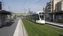 Deux tramways à la station Les Courtilles en novembre 2012.