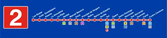 La ligne 2 du métro de Madrid (en espagnol : línea 2 del metro de Madrid) est l'une des treize lignes du métro de Madrid à Madrid capitale de l'Espagne. Elle relie la station Cuatro Caminos, situé au centre-ville, à la station Las Rosas, située dans la partie est de Madrid en Espagne.