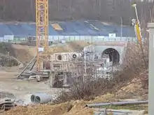Le tunnelier, qui avait été utilisé pour la construction du prolongement du métro 12, a été transporté démonté en plusieurs convois exceptionnels entre février et sur le site du chantier[54].