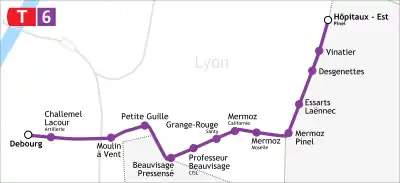 La ligne 6 du tramway de Lyon, plus simplement nommée T6, est une ligne de tramway de la métropole de Lyon qui traverse en rocade les 7e, 8e, et 3e arrondissements de Lyon entre les stations Debourg et Hôpitaux Est - Pinel.
