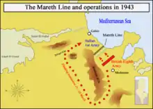 La bataille de Mareth a lieu du 16 au . Elle coïncide avec la pression exercée alors au centre et au nord de la Tunisie par les forces alliées sur les forces de l'Axe commandées par le général Hans-Jürgen von Arnim. Effectivement, au même moment, les Alliés commencent à retrouver la suprématie aérienne et maritime dans le bassin méditerranéen.