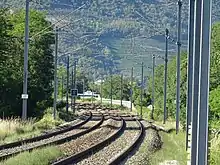 Ancienne limite de l'électrification au nord de la gare de Grenoble-Universités-Gières.