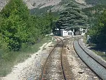 L'ancienne gare de La Faurie (Hautes-Alpes) vue depuis l'entrée nord de la ligne.
