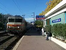Rame TER Provence-Alpes-Côte d'Azur en livrée Monaco, desservant la gare de Cannes-la-Bocca.