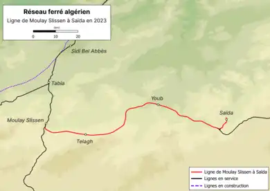 Localisation de la ligne de Moulay Slissen à Saïda dans le nord-ouest de l'Algérie.  | |
