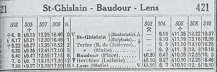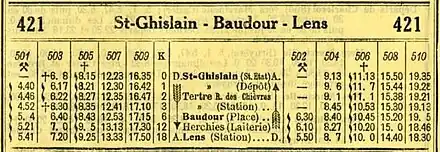 | Tableaux horaires[note 1] | 421 | |