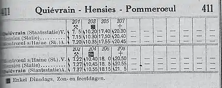 Tableaux[note 1] : 411/2 (1931), numéro partagé avec la ligne 411/1 Mainvault Station - Grandglise Route État[2].