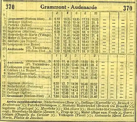 | Tableaux horaires[note 1] | 370 (1931) | |