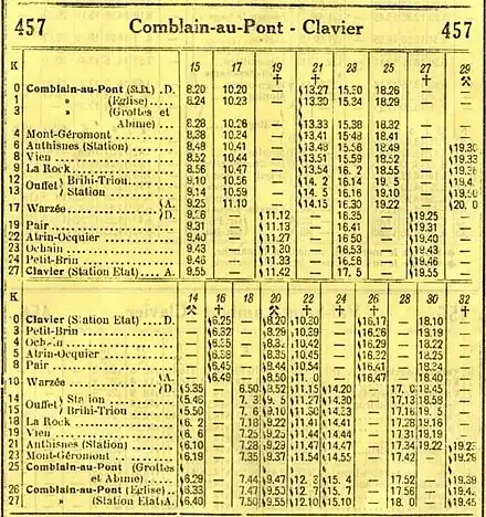 - Horaire des trains du au , Société nationale des chemins de fer belges (SNCB) (lire en ligne sur le Grenier Ferroviaire)