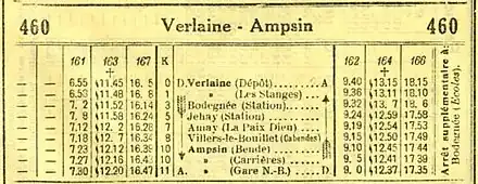 - : 460, numéro partagé entre les lignes 460A Hannut - Verlaine, 460B Fexhe-le-Haut-Clocher - Horion-Hozémont, 460C Ampsin - Verlaine et à partir de 59 Jemeppe-sur-Meuse - Mons-lez-Liège.