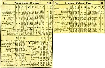 - 544 (1931)[1], numéro partagé avec la ligne électrique 6 Malonne - Profondeville.