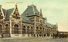 À la fin du XIXe siècle, François Delattre et Édouard Pilverdier obtiennent la concession d'une ligne à traction hippomobile reliant la gare de Péruwelz à la basilique Notre-Dame dans la commune de Bon-secours[note 2]. La ligne est mise en service le [2]. À partir de , elle donne correspondance à la gare de Péruwelz à la ligne de tramway vicinal 420 Tournai - Péruwelz (son terminus est situé un peu plus loin rue de la Verte Louche).