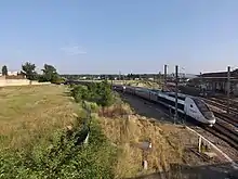 Un TGV POS quittant la ligne à son arrivée à Bourg-en-Bresse.