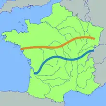 Avec le temps, cette ligne s'est déplacée notablement vers le sud jusqu’à devenir la limite actuelle entre langue d'oïl d'une part et langue d'oc et francoprovençal d’autre part[8].