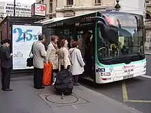 L'arrêt de bus du service devant le musée du Louvre. | |