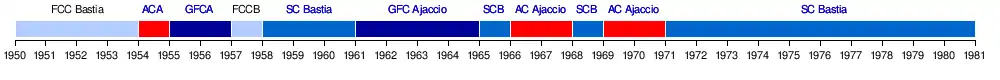 - De 1941 à 1943 et de 1945 à 1959 : Champion de la Division d'Honneur de Corse.