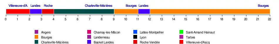 | Basket Landes | 3 | 2 | 1 | 4 | 6-1 | 4-1 | 4-1 | 6-1 | 5 | 4 | 2 | 1 | 2-1 | 2-1 | 3-1 | 3-1 | 4-1 | 4 | 3 | 3 | 2 | 4 | 2 | 21 | |