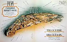 L'« exposition du Progrès social » est organisée à Roubaix et à Lille sur ce terrain, s’étendant également aux bâtiments de la Foire commerciale en face. Cette exposition était voulue par l'association des maires du Nord et de l'Est, pour montrer que, vingt ans après la fin de la première guerre mondiale, le renouveau, tant industriel que social, était bien installé. La manifestation est inaugurée le 14 mai par le ministre du commerce Fernand Gentin, avant de recevoir le 5 juin, le président de la République Albert Lebrun, accueilli par une foule immense. Cette volonté affirmée de regarder vers l'avenir rencontre un beau succès et amène pendant quelques mois une succession d'évènements joyeux (concerts, conférences, ..). La déclaration de guerre du 3 septembre 1939 va provoquer la fin prématurée de l'exposition et de l'espoir qu'elle voulait représenter [2]
