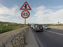 Panneau de limitation à 45 km/h sur une route près de Rabat.