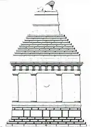 Le monument est carré avec un sommet pyramidal à gradins, le corps du lion creusé à partir d'un cercle. Cette similitude a conduit une partie des experts à dater l'œuvre de 350 av. J.-C., mais d'autres pensent que la statue surmontait un cénotaphe commémorant la bataille navale de Cnide voisine, en 394 av. J.-C., dans laquelle le général athénien Conon, commandant une flotte conjointe athénienne et perse, fut victorieux sur une flotte spartiate dirigée par Pisandre[2].