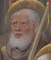 Portrait de Louis XII | Getty Center, Los Angeles, Ms. 79A. | Louis XII, à genou et en prières, est accompagné de saint Michel, de Charlemagne, de saint Louis et saint Denis. Sur le cadre doré est écrit « LOYS XIIe DE CE NOM », et sous ce cadre « IL LEST FAIT EN LEAGE DE XXXVI ANS ». La tête de Louis XII est rendu avec un grand réalisme, contrastant avec celles de ses protecteurs, et notamment de Charlemagne