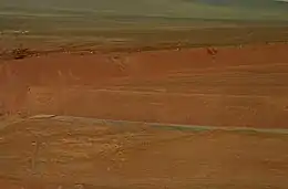 L'aire de lixiviation (leach pad) est la zone sur laquelle le tas est édifié. Cette structure plane doit assurer l’isolation du tas vis-à-vis de l'environnement (éviter la contamination) et doit favoriser la récupération du lixiviat enrichi. Pour ce faire l'aire de lixiviation est souvent étanchée par un complexe de deux géomembranes dont l'épaisseur est de l’ordre du millimètre[3]. Pour drainer la solution riche au fond de l'aire de lixiviation, une couche drainante est installée; elle est composée soit de tubes perforées intégrés dans un couche granulaire, soit de géocomposites de drainage. Ce système permet la collecte du lixiviat[4].