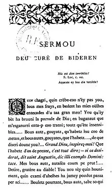 - Lou Sermon de Curè de Bideren XVIII ségle. . Pau : 1875.