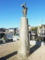 Stèle de l'âge du fer appelée lec'h, réutilisée comme borne milliaire puis christianisée, aujourd'hui replacée dans l'enclos paroissial.