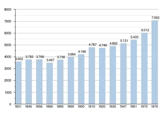 • Sources : INS, Rem. : 1831 jusqu'en 1970 = recensements, 1976 = nombre d'habitants au 31 décembre[4].