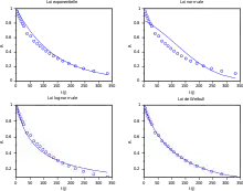| Exponentielle | λ = 0,007 36 | λ = 0,008 22 | 0,025 2 |