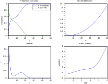 - en bas à gauche, la fonction de densité de la loi de fiabilité (probabilité de défaillance instantanée) ;