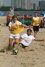 Le ballon utilisé est un ballon de football légèrement plus léger. Il est sphérique, en cuir ou dans une autre matière adéquate, a une circonférence comprise entre 68 et 70 cm et pèse entre 400 et 440 g.