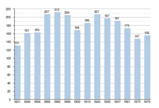 - Sources : INS, Rem. : 1831 jusqu'en 1970 = recensements, 1976 = nombre d'habitants au 31 décembre.