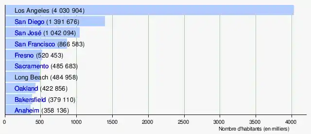Population des dix villes de Californie les plus peuplées (2016)[3]