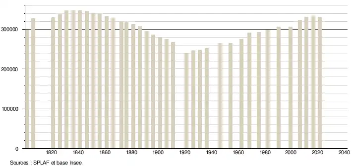 Si le Lot-et-Garonne compte 331 229 habitants en 2021 selon les derniers résultats de l'Insee, il demeure moins peuplé qu’au milieu du XIXe siècle car il a connu un déclin démographique prononcé sur près d’un siècle. Après avoir enregistré une nette reprise démographique après la Seconde Guerre mondiale, sa population ne progresse plus de manière régulière au cours des 25 dernières années.