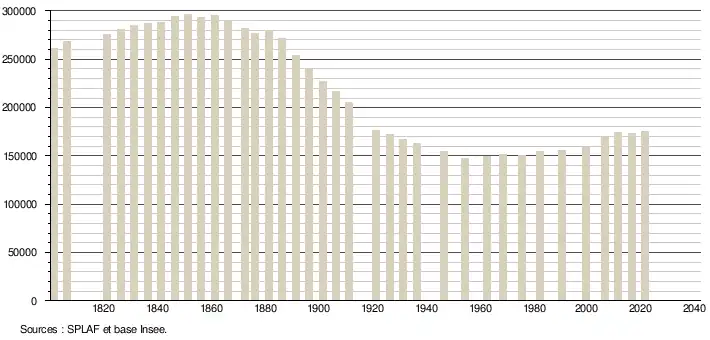 En 2021, le département comptait 174 942 habitants[Note 2], en augmentation de 0,89 % par rapport à 2015 (France hors Mayotte : +1,84 %).