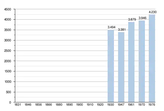 - Sources : INS, Rem. : 1930 jusqu'en 1970 = recensements, 1976 = nombre d'habitants au 31 décembre[2].