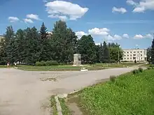 |  Monument en l'honneur de l'attribution à la ville de l'ordre de la Guerre patriotique. |  Place Lénine. |