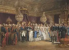 Le , Charles X, retiré à Rambouillet, abdique, et convainc son fils - le dauphin - de contresigner cette abdication. Il confie à son cousin le duc d’Orléans la tâche d’annoncer que son abdication se fait donc au profit de son petit-fils le duc de Bordeaux (futur « comte de Chambord »), faisant du duc d’Orléans le régent.