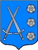 Écartelé : au I de sable au cerf couché d'or ; au II du quartier des barons préfets ; au III de pourpre à la tour d'or ailée d'argent et accostée en chef de deux mouchetures d'hermine de sable ; au IV d'azur à deux épées d'argent passées en sautoir, senestrées de trois roses rangées en pal.[3] |
