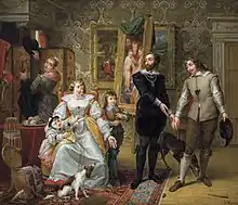 - Christine, reine de Suède, visitant l'atelier de Téniers ;