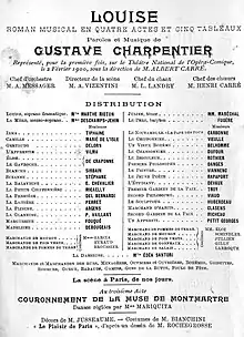 Louise est un opéra en quatre actes et cinq tableaux de Gustave Charpentier, créé le sur la scène de l'Opéra-Comique. Le compositeur souhaitait qualifier son œuvre de « roman musical » revendiquant avoir su réunir la partie descriptive de l’œuvre à sa dimension dramatique symbolisée par l'action et son déroulement. C'est le premier opéra naturaliste.