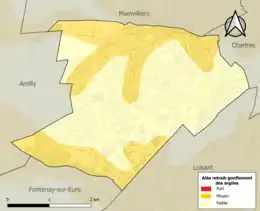 Le retrait-gonflement des sols argileux est susceptible d'engendrer des dommages importants aux bâtiments en cas d’alternance de périodes de sécheresse et de pluie. 40,5 % de la superficie communale est en aléa moyen ou fort (52,8 % au niveau départemental et 48,5 % au niveau national). Sur les 2 890 bâtiments dénombrés sur la commune en 2019, 909 sont en aléa moyen ou fort, soit 31 %, à comparer aux 70 % au niveau départemental et 54 % au niveau national. Une cartographie de l'exposition du territoire national au retrait gonflement des sols argileux est disponible sur le site du BRGM[22],[Carte 2].