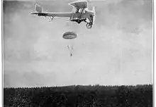 - Tiny Broadwick fut aussi en 1914 le premier être humain à effectuer une chute libre -contrôlée-. Elle compta ensuite plus de cent sauts de la sorte à son actif. Toujours en 1914, on lui contesta sa demande d'homologation du premier saut en parachute avec déploiement déclenché manuellement