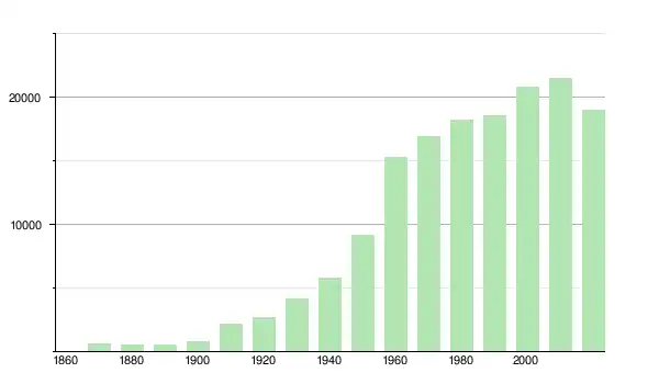 | 1970 | 16 961 | ▲ +10,82 % | |