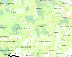 Situé à mi-chemin entre Bédarieux et Lodève, Lunas est niché au confluent du Gravezon, du Nize et du Dourdou.