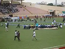 La lutte sénégalaise (njom en sérère[1],[2]; làmb en wolof[3]) est un sport traditionnel très populaire au Sénégal, tout particulièrement dans les régions du Sine-Saloum (chez les Sérères[1],[2]) et de la Casamance (chez les Diolas). On le pratique aussi en Gambie.