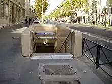 - Photo de l'accès condamné de la sortie sud devant le 64 boulevard Saint-Michel., sur wikimedia commons