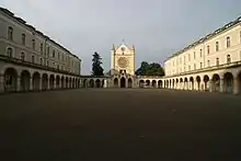 L'organisation des bâtiments respecte les plans types d'établissements scolaires et d'institutions religieuses du milieu du XIXe siècle[26]. Elle se rapproche aussi de l'architecture monastique, puisqu'on y trouve un cloître qui entoure une cour centrale[25]. En effet, à l'arrière, sur trois côtés, des galeries entourent une cour rectangulaire. La toiture du cloître aux baies cintrées forme une terrasse en hauteur. La chapelle du lycée, construite en 1862, est de style néo-gothique[25] : elle ferme le quatrième côté de la cour.